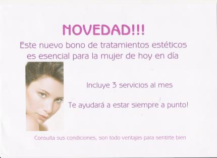 Yo estoy buscando fidelizar a la clienta y que conozcan más tratamientos ofreciendole diferentes servicios al mes en un bono. Os explico: