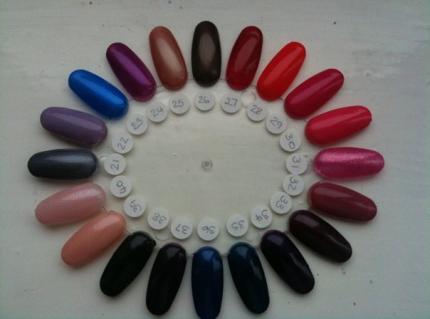 No tengo la carta de colores, en el centro donde imparten el curso los tienen todos y la dueña ha esmaltado varias ruedas de muestrario... le pedire via mail a ver si la tiene en soporte informatico..