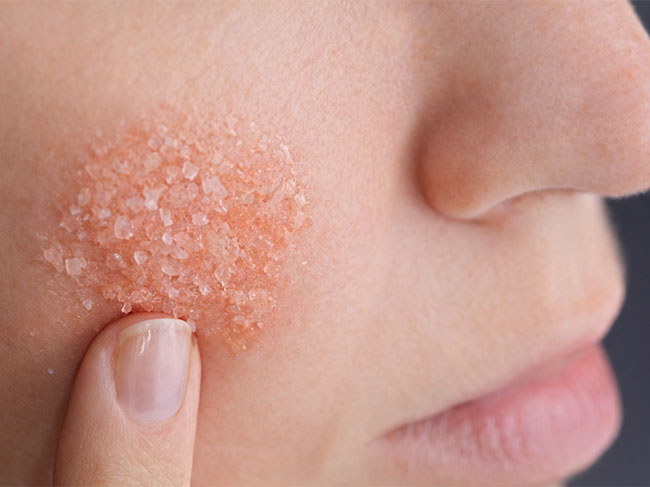 La sal también es un activo interesante en los tratamientos faciales. Al elegir una sal de grano fino, la profesional realiza una exfoliación con pequeños movimientos circulares que también ayuda a desintoxicar la epidermis. Una ligera transpiración permitirá una mejor absorción de nutrientes. El tratamiento suele proporcionar un brillo inmediato al cutis. Puede realizarse incluso en pieles delicadas, siempre que se dosifique correctamente la mezcla de sal y aceite y se masajee con suavidad.