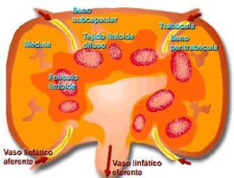 El líquido linfático o linfa, que son todos los deshechos que la sangre no necesita entraran por los vasos AFERENTE, y cuando los deja allí, entran en contacto con sus componentes, formando una respuesta inmunitaria, aparte de llevarse toda la basura que la sangre no necesita. Una vez pasa por sus filtros vuelve a salir por otro vaso que es EFERENTE. vuelve al sistema venoso y sigue su curso hasta el corazón otra vez.