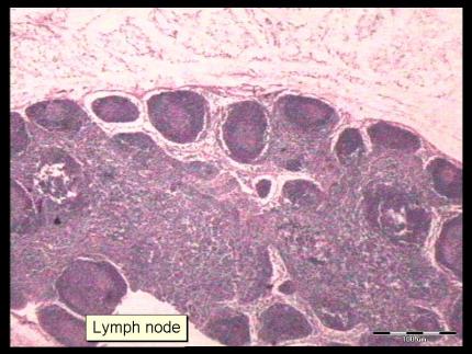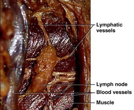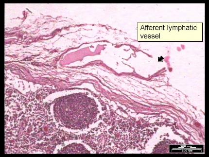 Imagen 9. Se aprecian vasos linfáticos 8LYMPATIC VESSELS, centro linfático LYMPH NODE , vaso sanguineo BLOOD VESSELS