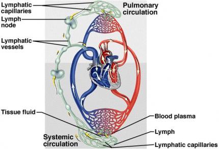 Este última imagen resulta muy ilustrativa. De izquierda a derecha y de arriba a abajo: Capilares linfáticos, Vasos linfáticos, Fluido tisular, Circulación sistémica, Circulación pulmonar, Plasma sanguíneo, Linfa, Capilares linfáticos. Un beso