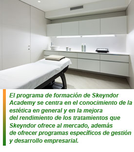 El programa de formación de Skeyndor Academy se centra en el conocimiento de la estética en general y en la mejora del rendimiento de los tratamientos que Skeyndor ofrece al mercado, además de ofrecer programas específicos de gestión y desarrollo empresarial.