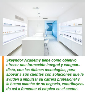 Skeyndor Academy tiene como objetivo ofrecer una formación integral y vanguardista, con las últimas tecnologías, para apoyar a sus clientes con soluciones que le ayuden a impulsar su carrera profesional y la buena marcha de su negocio, contribuyendo así a fomentar el empleo en el sector.