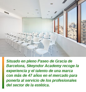 Skeyndor acaba de abrir las puertas de su nuevo centro de formación, Skeyndor Academy, ubicado en el prestigioso Paseo de Gracia de Barcelona. Un centro que recoge la experiencia y el talento de una marca con más de 47 años en el mercado para ponerla al servicio de los profesionales del sector de la estética. Formación de vanguardia y productos innovadores en un espacio único, destinado a estar todavía más cerca del cliente y a impulsar su carrera profesional.