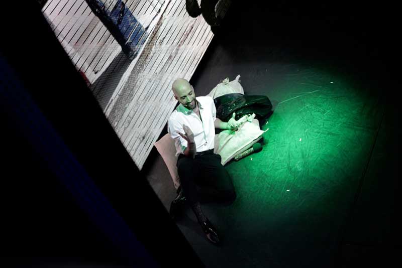 A continuación, Juli Bellot, sentado sobre sacos de arpillera, sorprendía al público con su interpretación del tema The Business of Love, una actuación que daría paso a la última presentación de los looks de Oasia y al desfile final, a cargo de todas las modelos participantes.