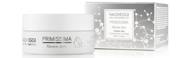 Si la piel padece de engrosamiento córneo, manchas o discromías, poros dilatados o cicatrices post acné, la crema facial Renew Skin de Vagheggi contiene una textura que suaviza la piel con un efecto calmante y relajante gracias a su combinación eficaz de ingredientes. Entre ellos destaca el ácido málico y el ácido mandélico, que se combina con el extracto de semillas de Passiflora edulis y retinyl palmitate, un éster del retinol menos irritante que garantiza un rostro uniforme. Es recomendable para todo tipo de pieles, a excepción de pieles grasas.