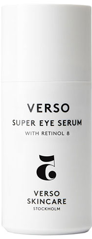La tienda on-line de cosméticos de autor mumona.com propone Verso Super Eye Serum, un contorno de ojos con textura suave y una potente fórmula rica en retinol 8 estabilizado, complejo de vitamina A patentado por Verso que es ocho veces más eficaz que el retinol convencional, péptidos y cúrcuma.