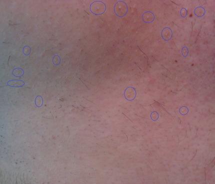 Sin embargo, presumo que no he sido muy clara en mi exposición. La aparición de PÁPULAS SEBÁCEAS se produce de 3 a 4 semanas post-tratamiento de un folículo por HF (termolísis y termolísis Flash), por DC (galvánica) y por Blend (mezcla de ambas corrientes). No se trata de una reacción inmediata o tras varias horas.