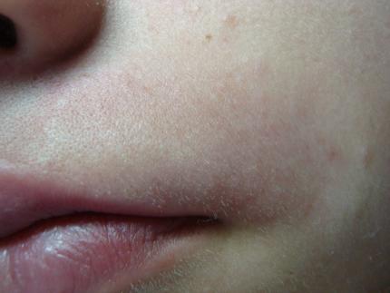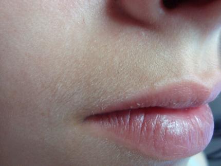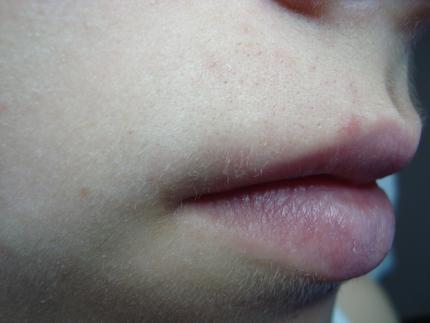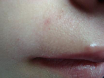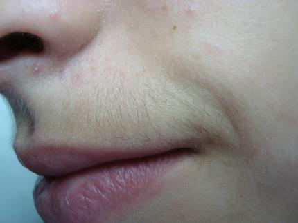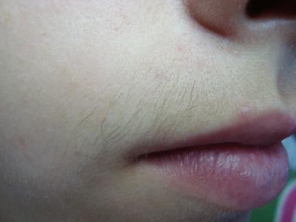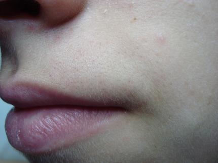Las primeras dos fotos pertenecen al labio superior de una niña de 13 años un mes después de ser tratado con DED en los dos ángulos externos: