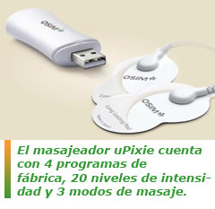 El artefacto se llama OSIM uPixie y dispone de cuatro programas (Energise, De-stress, Deep Relief, Shape Up) con 20 niveles de intensidad y tres modos de masaje-programas: Tapping (tocar), Kneading (amasar) y Squeezing (apretar). Se puede combinar con otros tipos de software para, por ejemplo, que los masajes se produzcan al ritmo de la música que se desee. Lógicamente, el tipo de masaje que realiza es suave y se produce por estimulación eléctrica muscular.