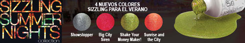 Las noches de verano de 2012 serán recordadas por la sugerente y atractiva colección Sizzling Summer Nights. Los cuatro nuevos y brillantes Gelish Soak-Off Gel de Harmony dibujan unas espectaculares uñas, realzando manos y pies. Concebidos para una mujer de bandera, que brilla por donde pasa.