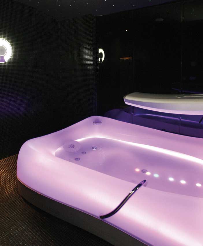 Entre la primera planta y el ático del hotel se destinan 750 metros al bienestar corporal y espiritual. Además de las terapias ya comentadas, el Nagari ofrece una piscina climatizada skyline con chorros y vistas al mar, junto con una instalación de entrenamiento personal a base de plataformas Power Plate, cabinas de belleza para tratamientos personalizados o bañera de estimulación sensoria. Esta última, conocida como La Siesté, permite experimentar una sensación de ingravidez muy placentera a su exclusiva clientela.