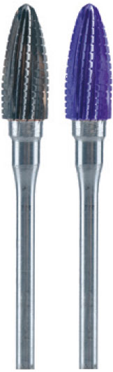 ➔ Birnenform/Forma de Almendra: el carburo de corte, en forma de pera o almendra, facilita que la punta posea una muy alta capacidad de carga y de vida útil. Su punta garantiza el corte, para trabajar con seguridad en Nail Art. Un metal duro con el corte de puntas, en forma de cruz dentada. Este tipo de corte de alta eficiencia favorece la eliminación de los paneles de gel y acrílico, a la vez que proporciona menos calor a la clienta. También actúa en la eliminación de callos. Y, muy importante, se pueden usar tanto en seco como en mojado.
