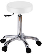 Taburete elegante y cómodo de diseño ergonómico. Asiento plano y altura regulable mediante pistón de gas. Tapizado en PU de gran calidad. Base cromada con ruedas.