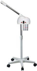 Práctico vaporizador facial con lámpara de ozono. Diseño sencillo, práctico y funcional. Equipado con brazo telescópico para ajustar la altura. Cabezal orientable.