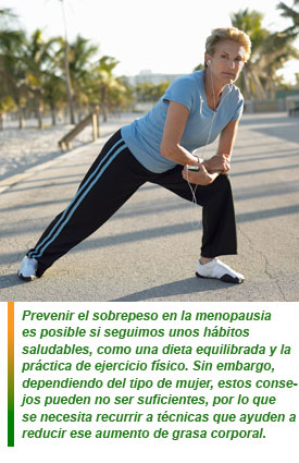 Como en otras etapas de la vida, prevenir el sobrepeso en la menopausia es posible si seguimos unos hábitos saludables, como una dieta equilibrada y la práctica de ejercicio físico. Sin embargo, dependiendo del tipo de mujer, estos consejos pueden no ser suficientes, por lo que se necesita recurrir a técnicas que ayuden a reducir ese aumento de grasa corporal.