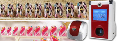 DiNails Professional pinta con alta precisión hasta 20 uñas de una sola vez, pudiendo retocar hasta con 25 tonos de colores y cientos de bordes personalizados.