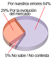 Un 29% de los encuestados (3.860) cree que esos cierres se producen por la evolución del mercado. Por otro lado, 8.479 votantes (64%) piensan que la culpa es de nuestros propios errores. Por último, 771 votantes (5%) han optado por la opción No sabe/No contesta.