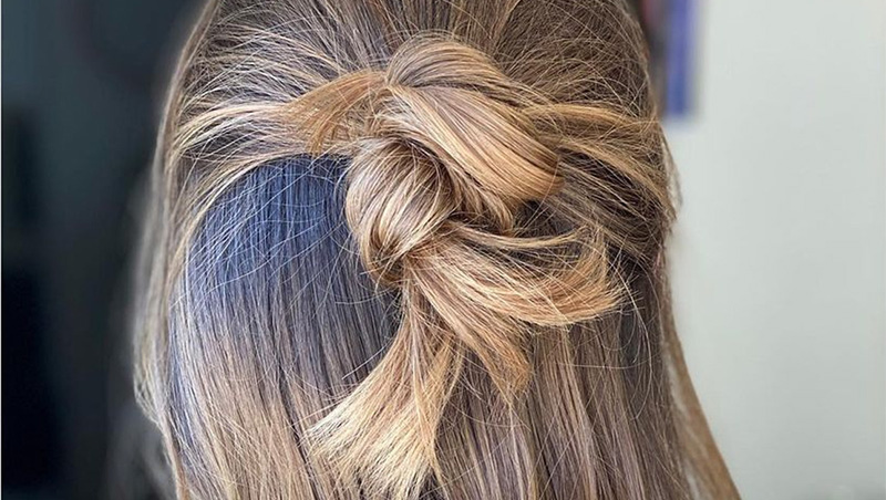 Los detalles importan y son la clave de este recogido. "La actitud del momento nos propone recogidos y looks sencillos a los que añadimos algún elemento original que rompe con lo previsible. Un semirrecogido que anudamos, creando un falso lazo o nudo despeja nuestro rostro y crea personalidad", asegura Raquel Saiz de Salón Blue by Raquel Saiz desde Torrelavega (Cantabria).