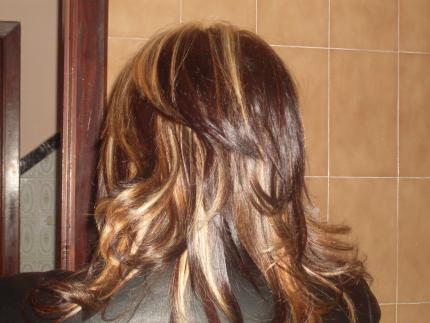Bueno, pues la verdad es que como no lleva el pelo bien puesto, tampoco te puedo decir mucho. Pero dentro de lo que puedo ver, más o menos; te diré, que yo le hubiera hecho más mechas, finitas y tricotadas. Es que con ese contraste con la base no me gustan así tan gordas, y dá la impresión como si sobrara alguna mecha de un lado, y como si faltaran del otro lado. Esa es la impresión que me dá, aunque como ya te dije tampoco tiene bien puesto el pelo.