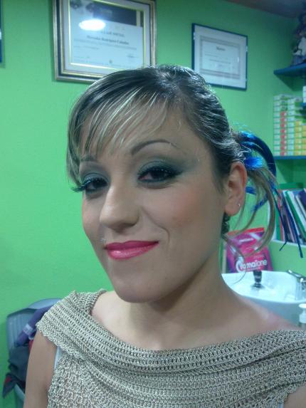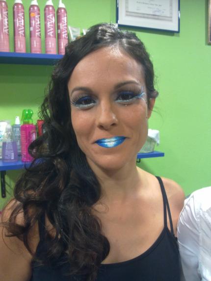 pestañas postizas, algo de aguacolor, ondas al agua y rulos