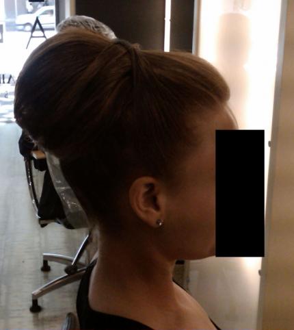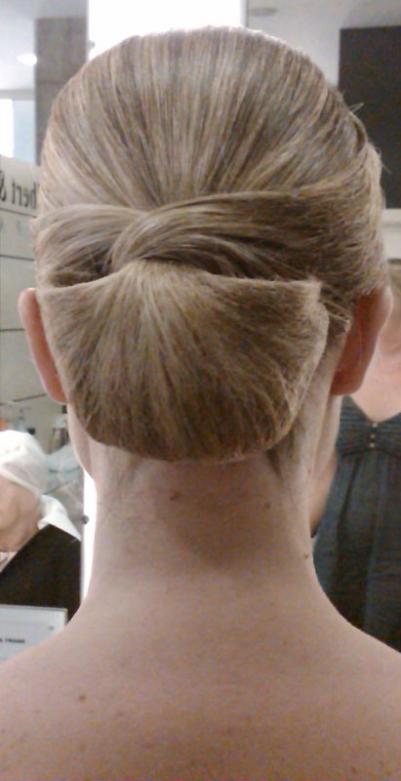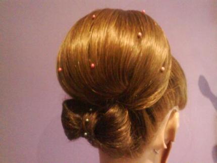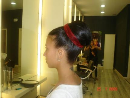 Ya me lo pensaba, que iría la parte de delante encíma cubriendo el moño, pero claro, eso si la clienta tiene el flequillo largo jijiji. Y los lados los has retorcido un poco, no??, (dá la impresión en la foto).