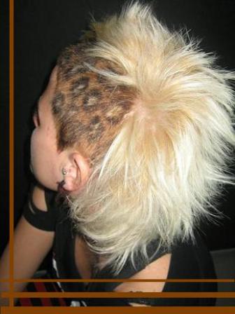 mmmmmmmmmmmmmm hay vannnnn mas, leopardo: ya hace muchos años se realizaban en los 80,estos son actuales para unas fotografias..tambien algun corte pulidito y normalito que tamnbien peinamos con secador y rulikossss..para quien sirva: decolorar a bajos volumenes la zona a marmolear (leopardear o komo se quiera)teñir despues con un cobre claro 8.4 o 8.34 dejando zonas en circulo sin teñir (zonas de deco) despues finalizar bordeando con un bastoncito o pincel fino las manchas negras..