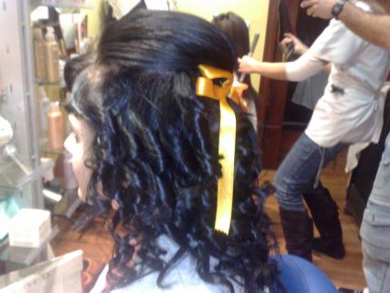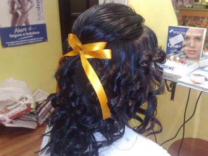 gracias, el lazo es por que iva disfraza de la bella y la bestia y queria ponerse el lazo, yo le queria haber recogido mas cabello pero tiene complejo con las orejas y no queria que se le vieran.