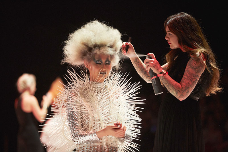 Seguidamente, Julia Beckers, ganadora del Style Masters Awards 2017, llegó junto a una demostración en directo de los nueve finalistas de este año, quienes cautivaron al público reproduciendo en directo uno de los tres looks realizados para el concurso.