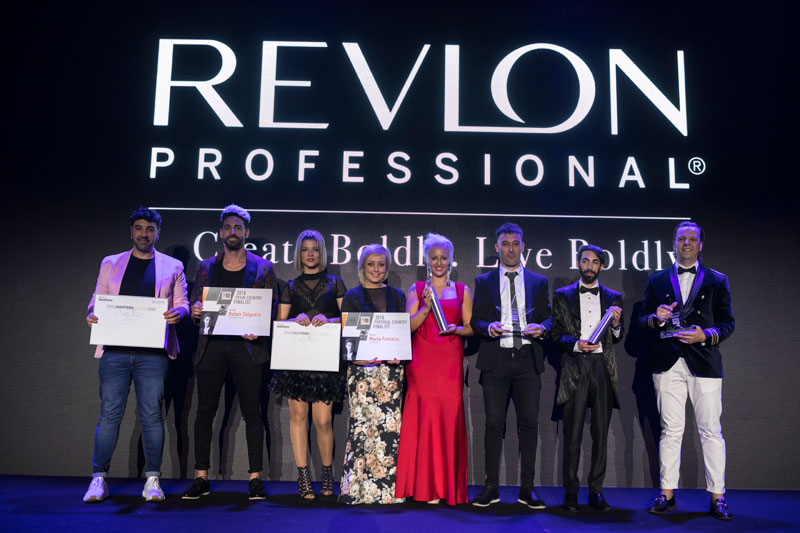 María Montes Campal, Manuel Mon Estilistas (Oviedo) fue nombrada Global Winner 2018 y recibió el premio de la mano de Silvia Galfo, President of Revlon Brands.