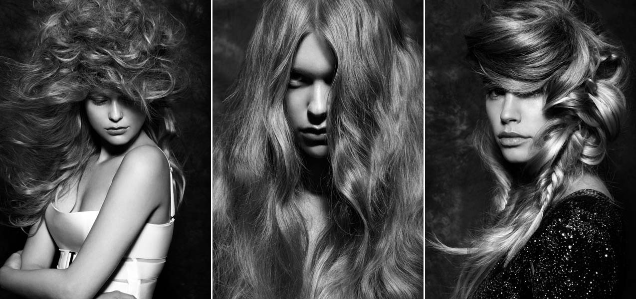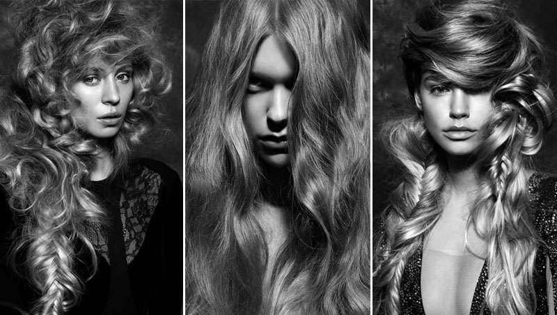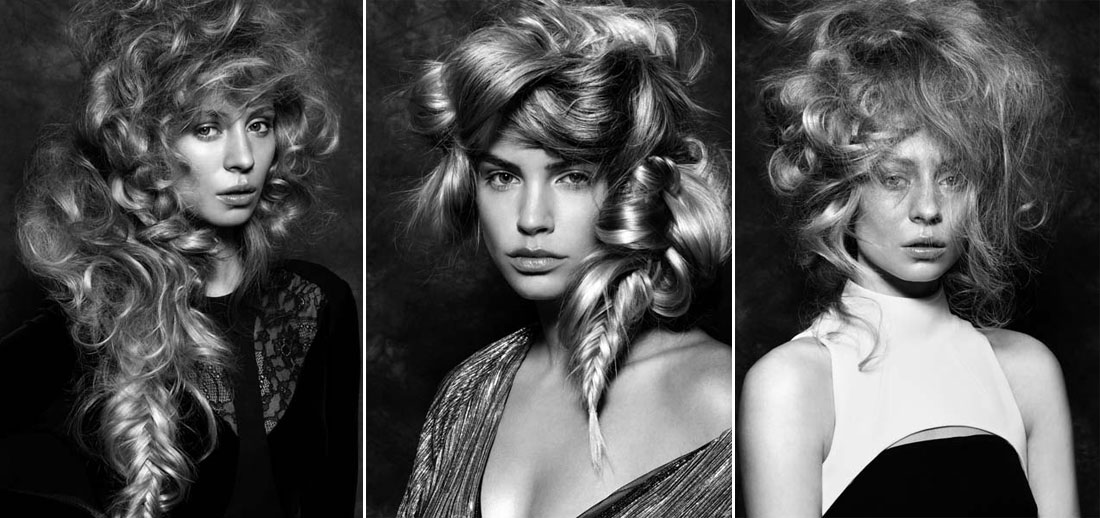 Los volúmenes exagerados, las texturas aparentemente descontroladas y los acabados lujosos en melenas largas protagonizan esta colección del reconocido peluquero británico