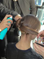 - "Continué con la parte derecha en diagonal desde la coronilla hasta la nuca, y de nuevo rocié el cabello con la Laca Luminosa de Fijación Fuerte de Moroccanoil."