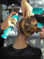 - "Empecé aplicando el Tratamiento Moroccanoil (o el Tratamiento Light Moroccanoil para las modelos con cabello claro o fino) para acondicionar y suavizar."
