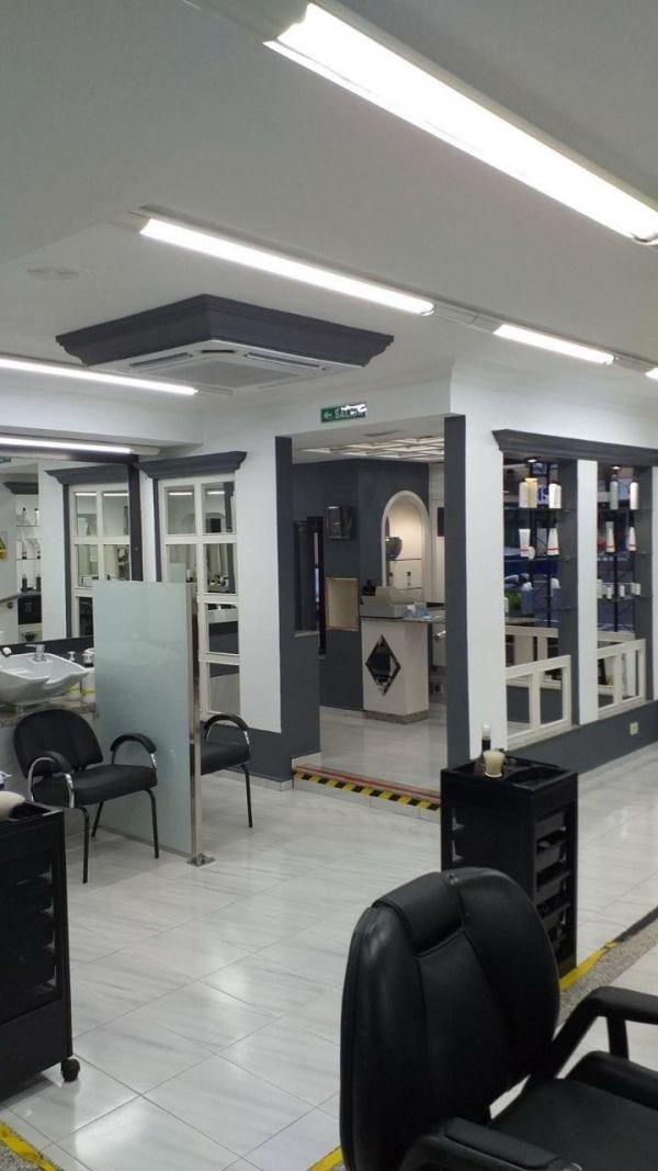 Aire Acondicionado de 7.000 Frigorias. Año y medio de uso. Luces del Techo con fluorescentes LED. Mostrador de Recepción de Granito. Techo luz Recepción y entrada Local de Madera lacada y Cristales. Escapar de hierro y cristal 1.800€