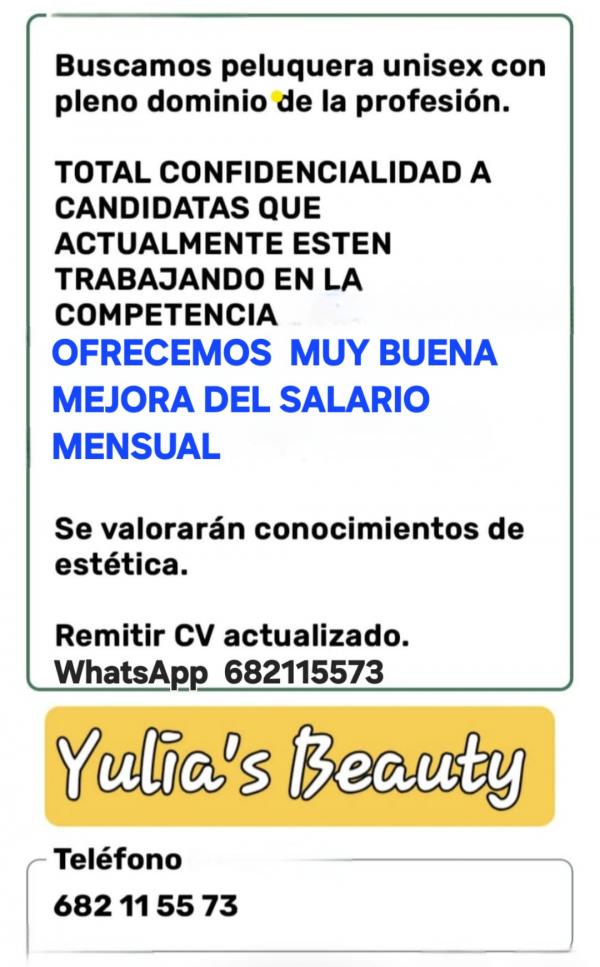 Para Mérida necesitamos peluqueras para salón de peluquería.