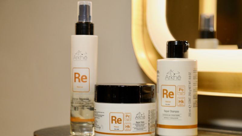 La preparación comenzó con la gama Rescue de Arkhé Cosmetics, un tratamiento fortalecedor, nutritivo y revitalizante que ayuda a prevenir daños en la fibra capilar, protege frente a la rotura y aporta reconstrucción y resistencia.
