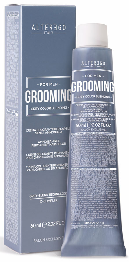 La línea de grooming, de Alter Ego Italy, carece de amoniaco. Contiene una fórmula enriquecida con el complejo Q_Complex, a base de quinoa certificada eco con poder de absorción del pigmento colorante en el cabello