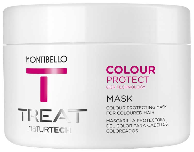 - Tratamiento. Para proteger y prolongar el color, se extiende Treat Naturtech Colour Protect Mask. Hidrata el cabello proporcionándole protección UV y térmica, además de tratar y cuidar la fibra capilar. Se aplica sobre el cabello lavado y secado con una toalla. Se deja actuar y se aclara, a fondo, con agua. La base nutricional son metabolitos antioxidantes, carbohidratos acondicionadores derivados del almidón de maíz y protectores solares UVA-UVB. Se aconseja su uso en cabellos con un grado de daño medio.