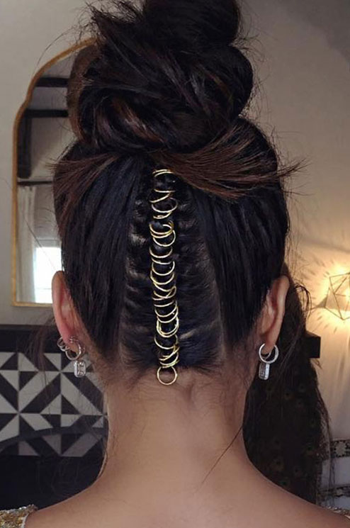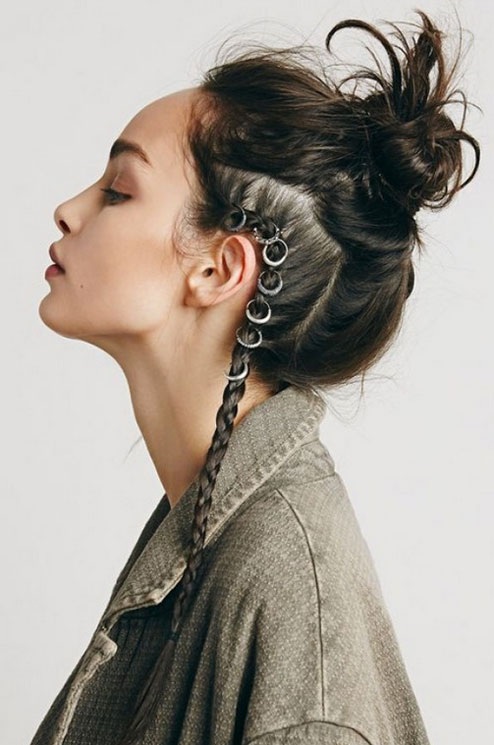 El hairpiercing consiste en pequeños aros que se colocan a lo largo de las trenzas como si de piercings se trataran. Se puede escoger entre una amplia gama de incrustaciones: de colores, metálicas e incluso colgantes que le den un aire divertido y desenfadado al look. Todo depende del efecto final que se quiera conseguir.