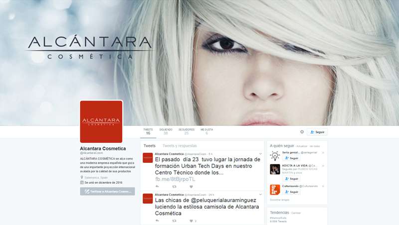 Alcántara Cosmética inicia el año 2017 con el propósito de aumentar los canales de comunicación con sus clientes. Para ello, la marca da sus primeros pasos en las redes sociales, de forma que dispone de dos cuentas propias en Facebook y Twitter. El mundo 2.0 se convierte en una plataforma excelente para informar acerca de noticias, eventos y novedades a los clientes de Alcántara Cosmética.