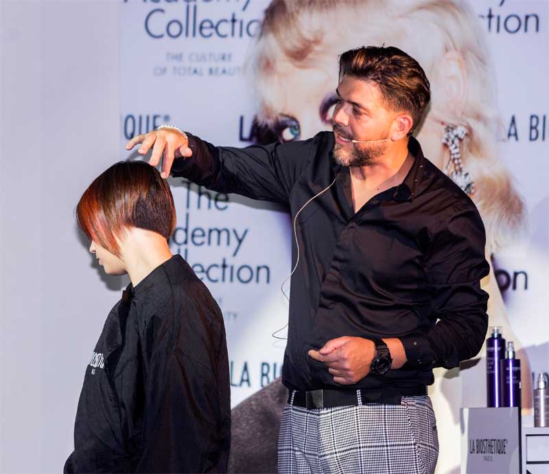 Con una puesta en escena impecable, el equipo creativo La Biosthetique demostró sobre el escenario la teoría y práctica de cada uno de los tres looks icónicos de esta colección. En concreto se trata de tres corrientes muy actuales, que marcan la tendencia en cuanto al peinado: rizos perfectos, ondas bien definidas y un bob brillante.