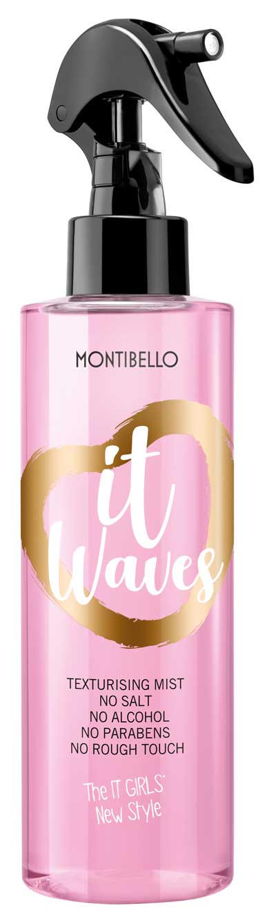 It Waves, de Montibello, es el primer texturizante en mist del mercado con beneficios específicos para crear ondas con efecto natural y vaporosas. Se trata de una innovación en productos de peinado que supondrá una nueva manera de trabajar el brushing y los acabados de los peinados con textura, movimiento y ondas en el salón. It Waves descubre una nueva onda, natural o definida, que se caracteriza por su frescura, movimiento, feminidad y sensualidad. El estilo de las it girls ya está aquí.