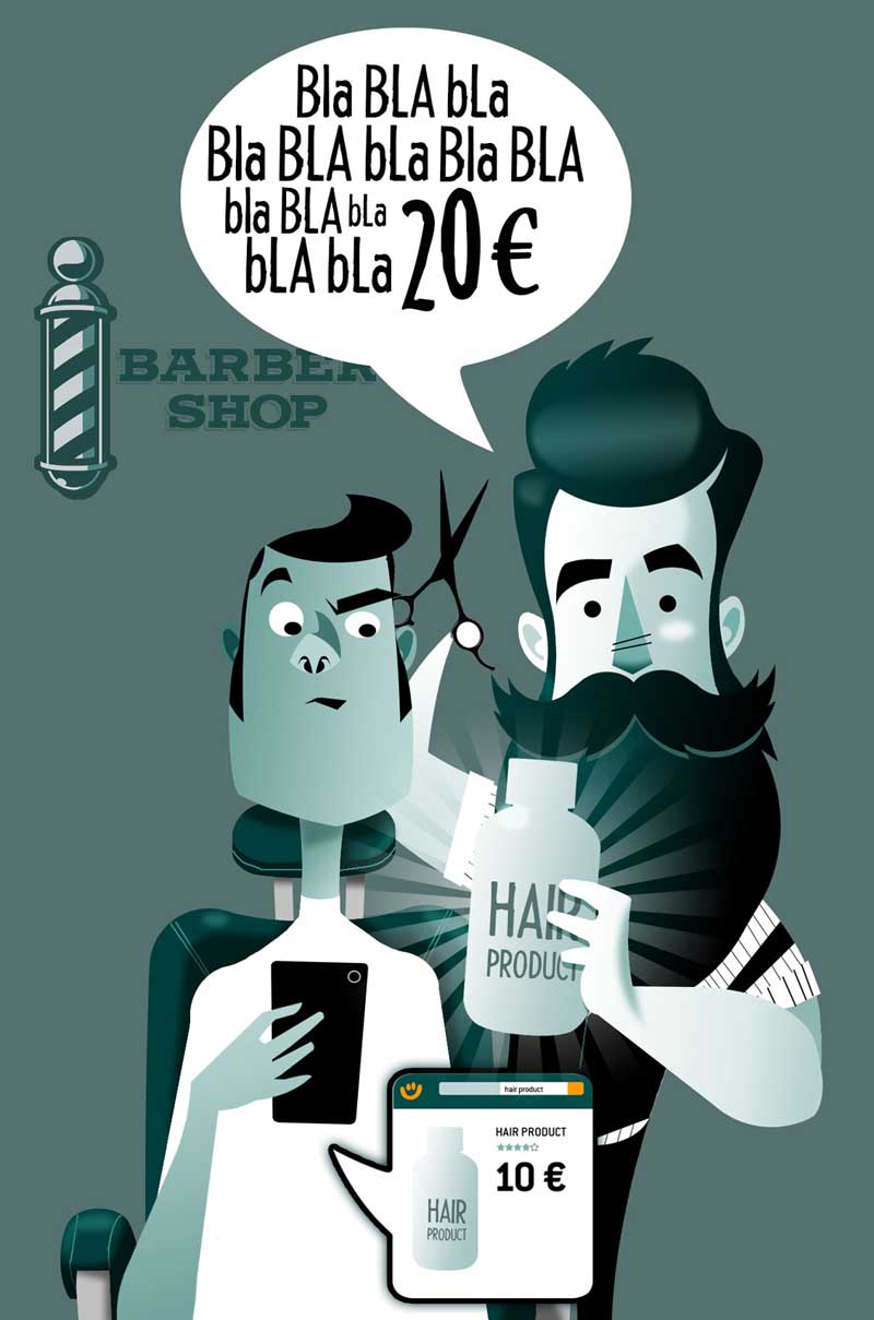 Hoy en día, el showrooming es algo que la mayoría de los consumidores practican, siendo parte de la nueva cultura de consumo. Una cultura resultante de la crisis global de años atrás que cambió los hábitos de compra anteriores. Los usuarios se volvieron más racionales y menos impulsivos y emocionales. Sin embargo, existe una diferencia fundamental en nuestro sector, tal y como desgrana Muñoz: "Toda marca desea que la experiencia de uso de sus productos sea óptima. En lo que al sector del cabello se refiere, los fabricantes diseñan productos con efectos poco potentes para el mercado masivo, donde el cliente elije sin consejo profesional, evitando que se puedan generar malas experiencias. El riesgo derivado de una mala elección es alto". En el canal profesional, los productos verdaderamente profesionales se formulan y diseñan pensando que la venta se va a producir a través de un prescriptor cualificado que evitaría esa mala experiencia al cliente final. De ahí que sus efectos sean más potentes, en opinión de Muñoz. Un estudio de la escuela de negocios de Columbia llega a la conclusión que el porcentaje de showroomers es del 73% de hombres frente al 63% de mujeres, por lo que las barberías se podrían ver "más afectadas" que los salones femeninos con los nuevos hábitos de consumo."En categorías como styling, una compra sin asesoramiento puede producir un estilo deficiente, pero te animo a que busques ejemplos de decoloración y oxidante en cualquier plataforma on-line. Después, consulta imágenes de quemaduras por decoloración en Google. El hecho de dejar un producto profesional, sin asesoramiento, en manos del consumidor, puede causar situaciones dramáticas e incluso peligrosas", reconoce. Para el fundador de Salonbigbrother, los productos no son buenos ni malos, son adecuados o no. De ahí, que el peluquero aporte valor a la cadena de distribución, seleccionando los productos que mejor le funcionarían al consumidor.