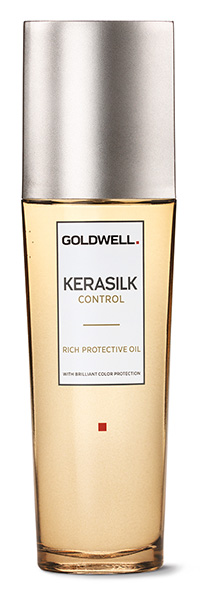 » KERASILK CONTROL RICH PROTECTIVE OIL. Aceite protector intensivo que aporta un control instantáneo y un brillo extraordinario al cabello indisciplinado y encrespado. Al mismo tiempo, este producto actúa como protector térmico y antihumedad. Modo de uso: aplicar sobre el cabello húmedo o seco y no aclarar.