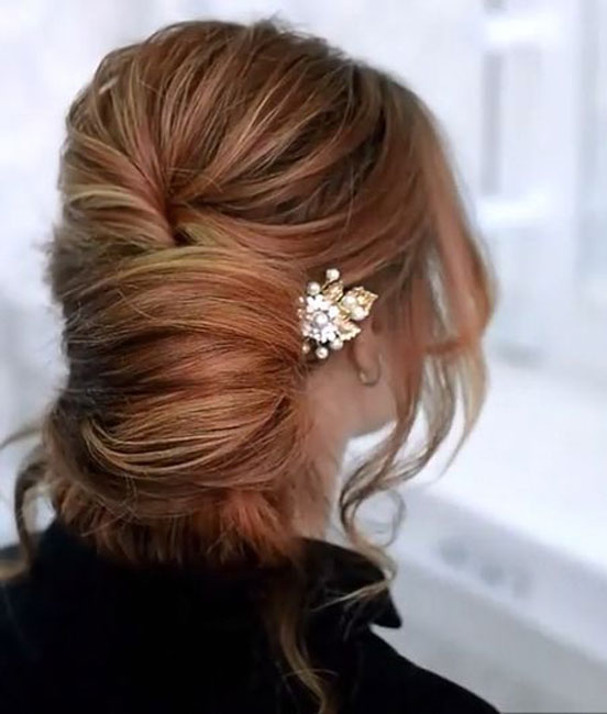 2) Recogidos altos cuidadosamente despeinados: "Transmiten personalidad y confianza en quién los luce esa noche, combinando a la perfección lo casual y lo chic, aunque sin duda triunfarán los peinados clásicos, naturales y con poco volumen, con los que verse radiante y espectacular, que además destacarán si lo acompañamos con un vestido sexy y llamativo. Otra apuesta segura son los peinados sencillos y lisos con raya en el medio y despejado detrás de las orejas. Volviendo a los recogidos más informales, quedan ideales deshechos con cepillo y dejando caer los mechones sueltos, aportando un toque de naturalidad y juventud a un look que de lo contrario parecería más serio y formal. Todavía se vería mejor si previamente trabajamos la coloración del cabello con suaves reflejos, siempre hechos con pincel, pues para las bases oscuras, como las de muchas españolas, conseguiríamos aportar toques de luz que realzarían la belleza natural".
