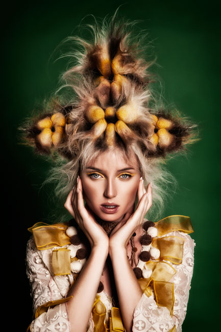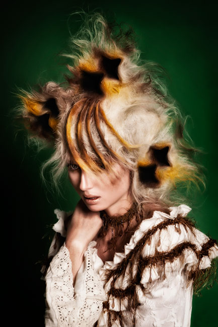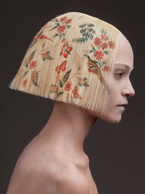 La Favorite es una colección inspirada en los tejidos que utilizaba la burguesía francesa durante el siglo XVIII para decorar sus palacios. Las flores y los animales inspiraron a los modistos para diseñar maravillosos tejidos y utilizarlos para crear los vestidos para la Haute Couture francesa. Cuando empezamos a crear la colección nos pareció interesante reproducir estos estampados en el cabello y decorarlo como si se tratara de uno de los tejidos de la época.