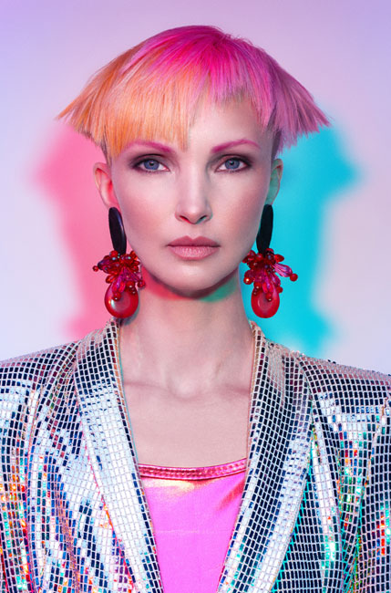 Lo que más me gusta de mi colección es que el concepto sobre el que la basé está firmemente representado. Kie es una colección que habla de la actitud, en concreto, de esa actitud que nos falta en ciertos momentos. Esa postura ‘badass’ que te hubiera gustado tomar en cierta ocasión y con la que fantaseas después de no haberla tomado. Con este concepto, creé las cuatro imágenes que son cuatro looks muy comerciales, con un elemento rompedor que les otorga ese plus de actitud y personalidad: una textura rizada con esquinas y desconexiones muy pronunciadas. Una melena recta al que potenciamos el flequillo con una línea de color para dar una fuerza brutal, el pixie deteriorado que juega con colores oscuros en el interior o esas líneas laterales que rompen con la estética del cabello boyish más tradicional.