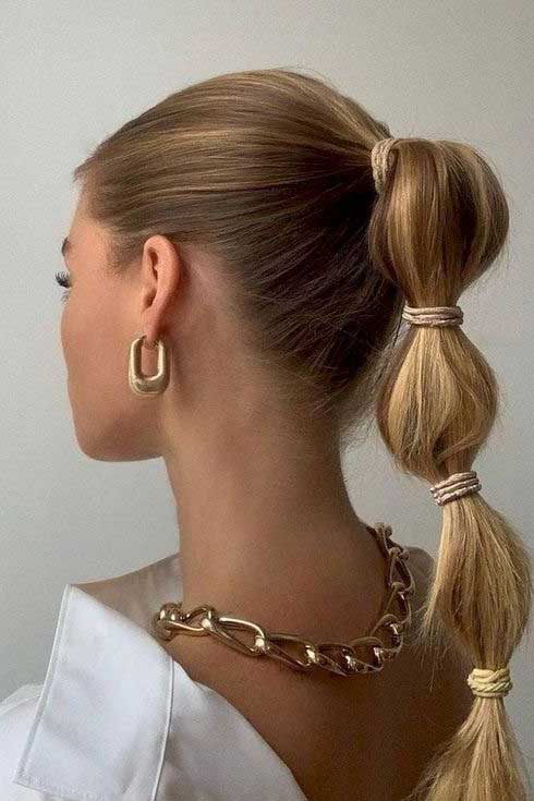 5) Un acabado que dura: escoge los productos de finalización y acabado adecuados para mantener el cabello en su lugar. Envuelve un pequeño trozo de pelo alrededor del elástico que sujeta la coleta para cubrirlo, o no. La coletas burbuja, por ejemplo, quedan genial con gomas y elásticos 'ad hoc', originales y que aporten un toque distintivo al peinado final.