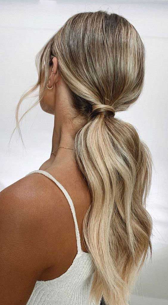 4) Longitud: las extensiones son siempre una opción para estilos más largos: elije aquellas que coincidan con la textura original del cabello y la longitud deseada. Utiliza horquillas para asegurar extensiones en la parte superior e inferior de la cola de caballo.